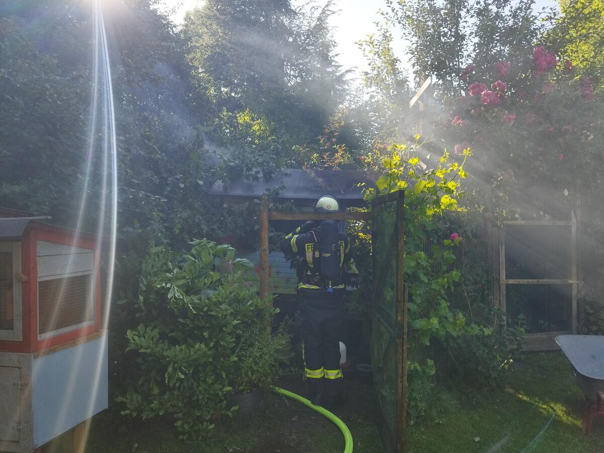 Am frühen Abend ging es für uns zu einem gemeldeten Kleinbrand in einem hölzernen Gartenhaus. Durch unser schnelles Eingreifen mittels eines C-Rohres, konnte das Feuer schnell bekämpft werden und wir zügig wieder einrücken.