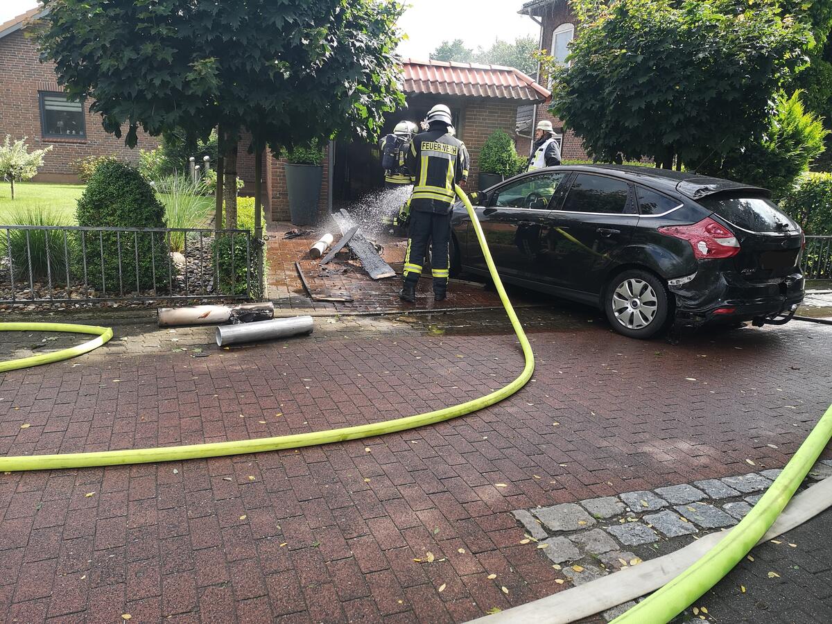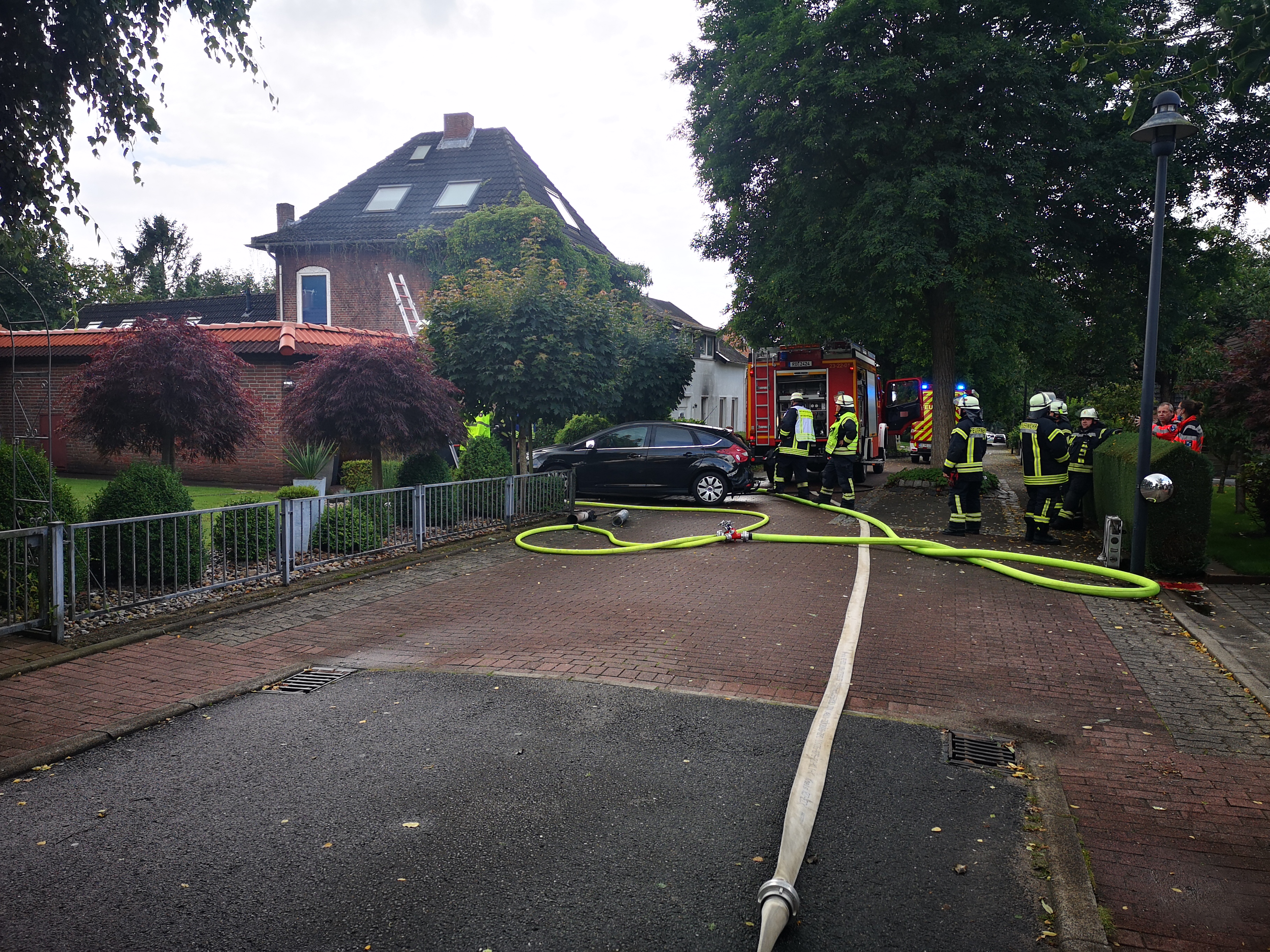 Am Einsatzort angekommen konnte durch ein schnelles Eingreifen mittels Schnellangriff ein übergreifen auf das in der Garage befindliche Auto und den Rest der Garage verhindert werden.