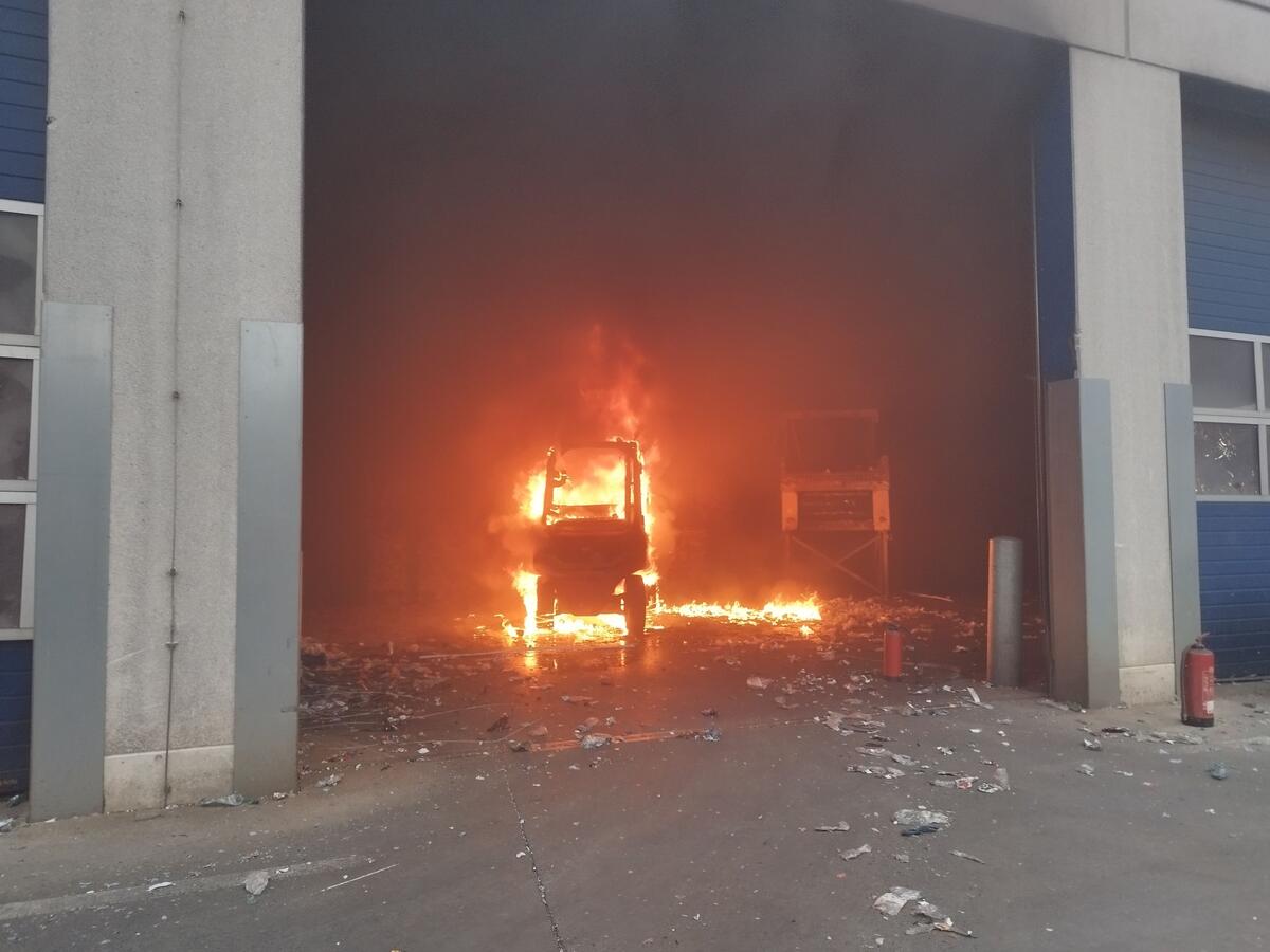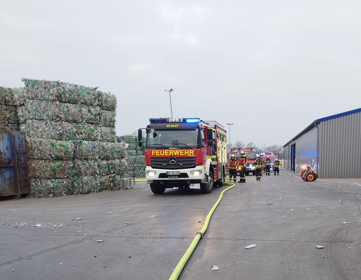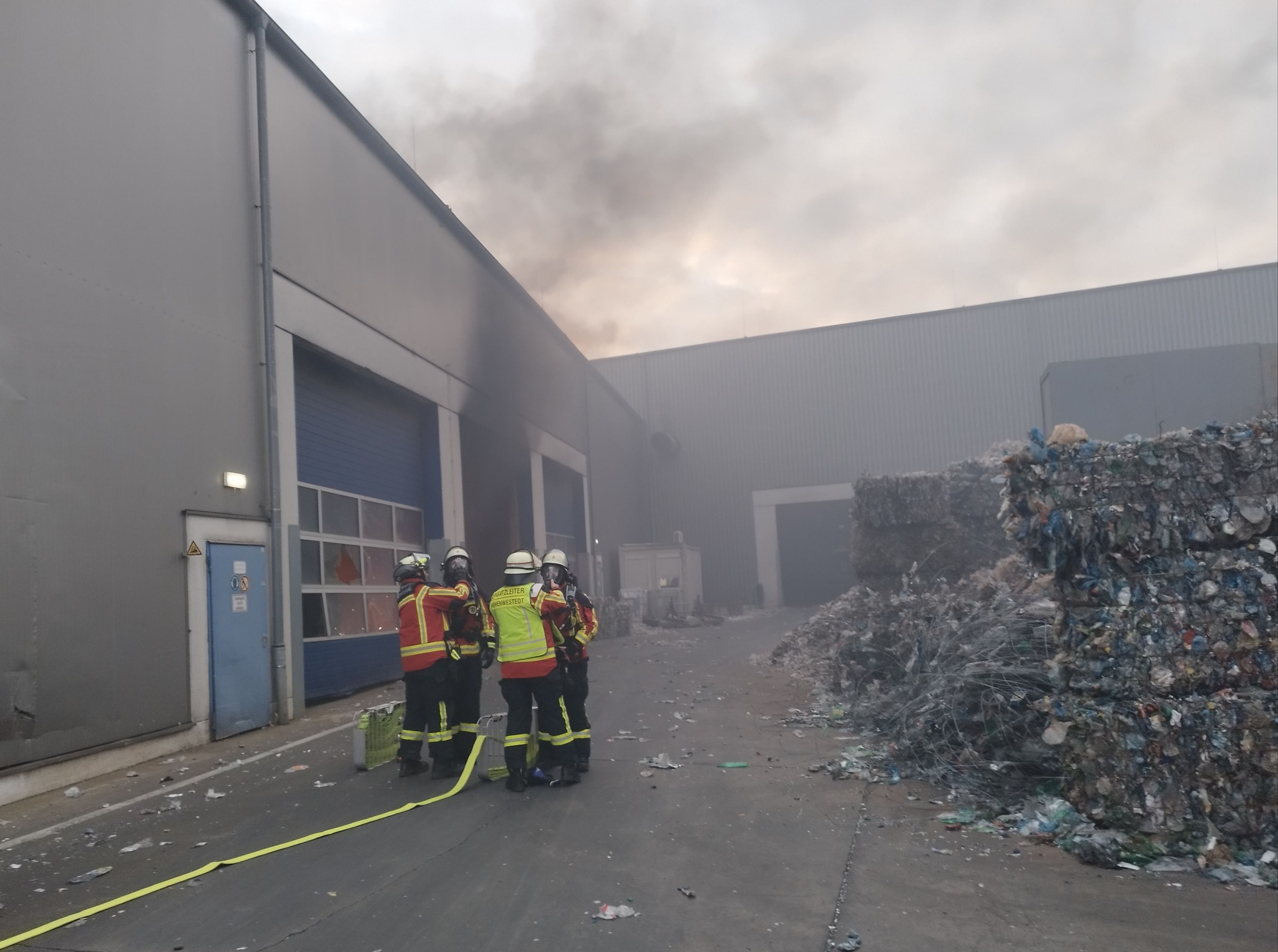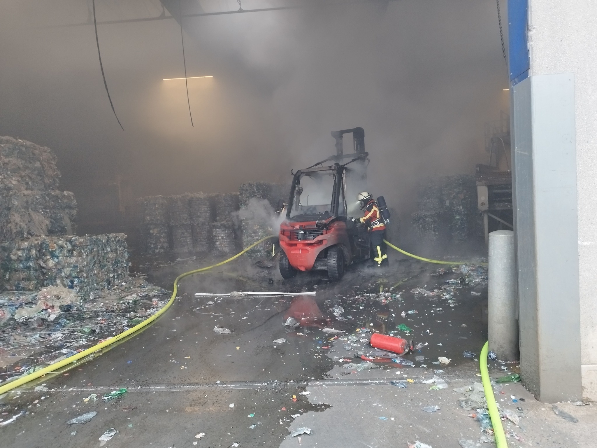 Am Morgen des Folgetages wurden wir aufgrund einer Feuermeldung in einer Produktionshalle alarmiert. Hier war ein Flurförderzeug in Brand geraten und sorgte neben dem eigentlichen Feuer für einer erhebliche Rauchentwicklung. Da alle Mitarbeiter bei unserem Eintreffen bereits in Sicherheit waren, konzentrierten wir uns mit zwei handgeführten Strahlrohren unter schwerem Atemschutz auf die Brandbekämpfung. Nach kurzer Zeit konnte "Feuer aus"gemeldet werden. Verletzt wurde niemand. Die Nachlösch- und Belüftungsarbeiten nahmen noch etwas Zeit in Anspruch, sodass wir nach ca. 2,5 Stunden alle Fahrzeuge wieder einsatzbereit melden und diesen Einsatz beenden konnten.