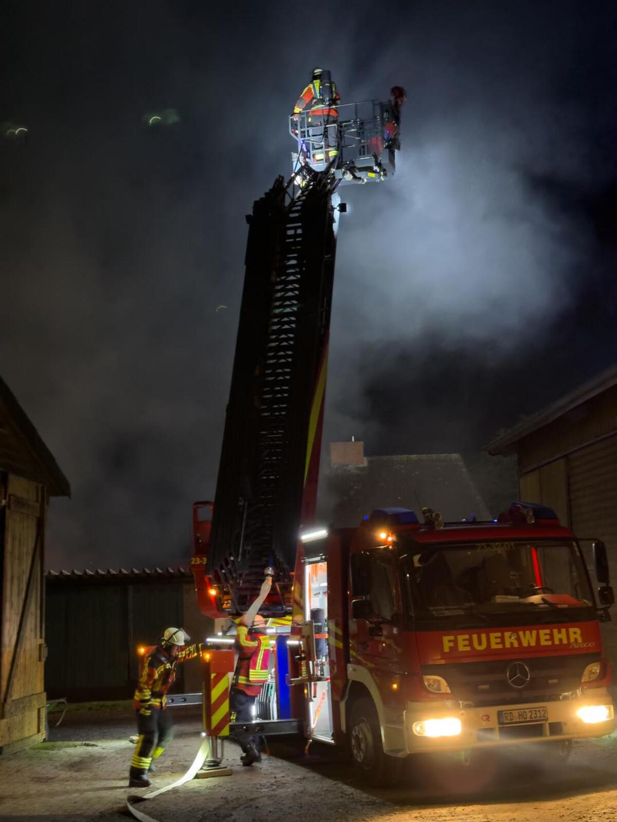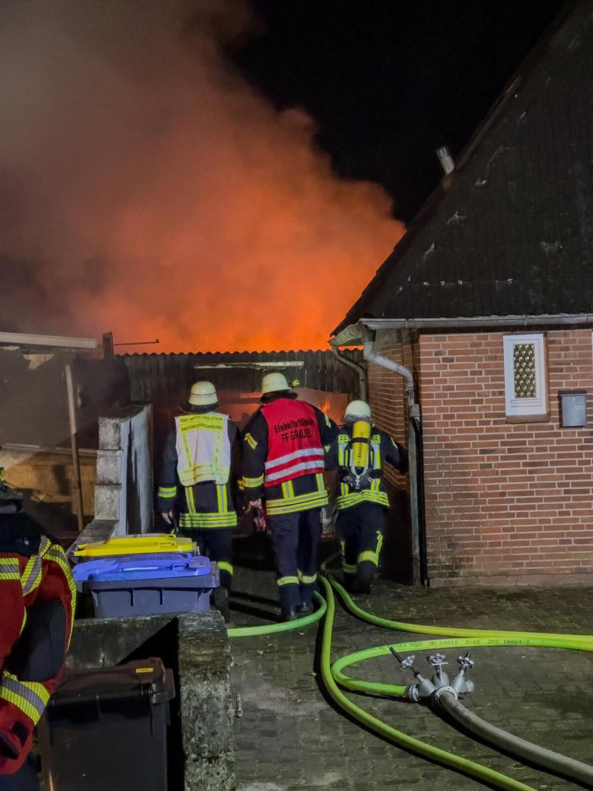 Am frühen Morgen wurden wir zu einem Feuer in Meezen alarmiert. In einem Nebengebäude eines Einfamilienhauses brach aus noch unerklärter Ursache ein Feuer aus. Beim Eintreffen der zeitgleich alarmierten Wehren aus Meezen, Grauel, Hennstedt, Poyenberg und Hohenwestedt stand das Nebengebäude bereits im Vollbrand und drohte auf das Einfamilienhaus und einem angrenzenden Stall überzugreifen. Durch eine gezielte Riegelstellung konnte jedoch ein Übergreifen verhindert werden. Im weiteren Verlauf konnte das Feuer unter schwerem Atemschutz und zwei C-Rohren bekämpft werden. Nach ca. 3 Stunden konnten wir wieder einrücken.