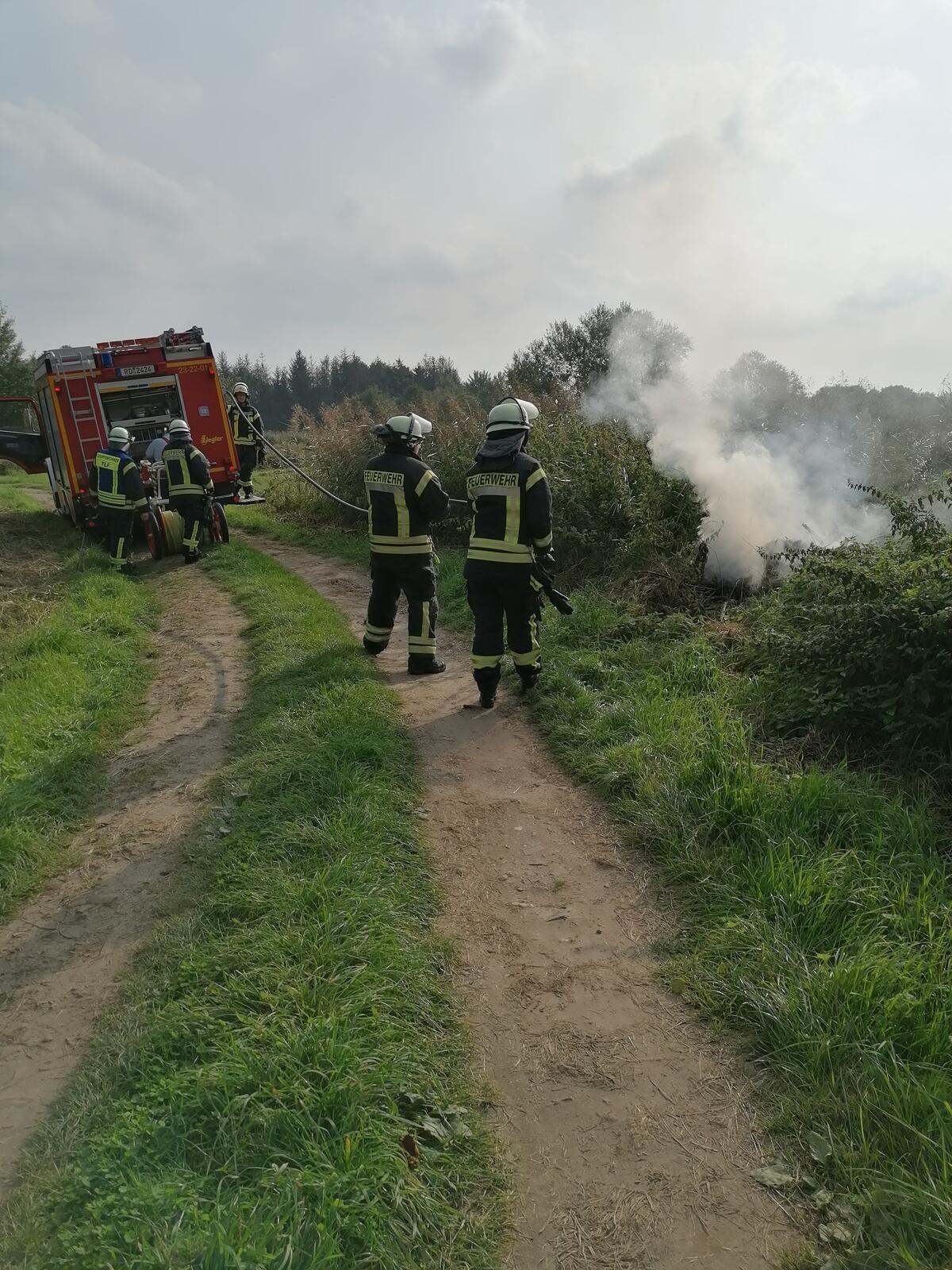 Brennendes Unrat war am Nachmittag Anlass unserer Alarmierung. Auf knapp 5qm brannten Holzreste, welche wir kurzerhand mit dem S-Rohr ablöschten und nach etwa 30 Minuten wieder einrücken konnten.
