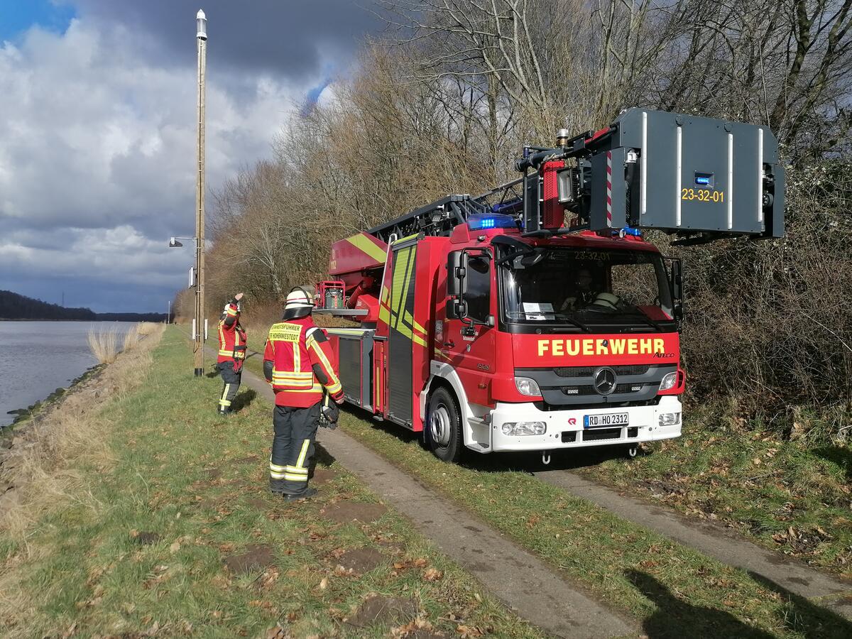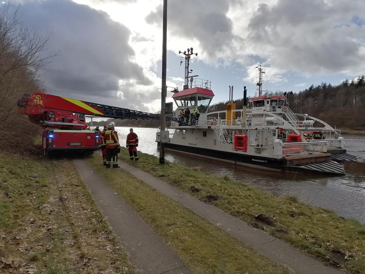einheit der Feuerwehr Brunsbüttel auf den an der Uferkante festgesetzten Havaristen überzusetzen.