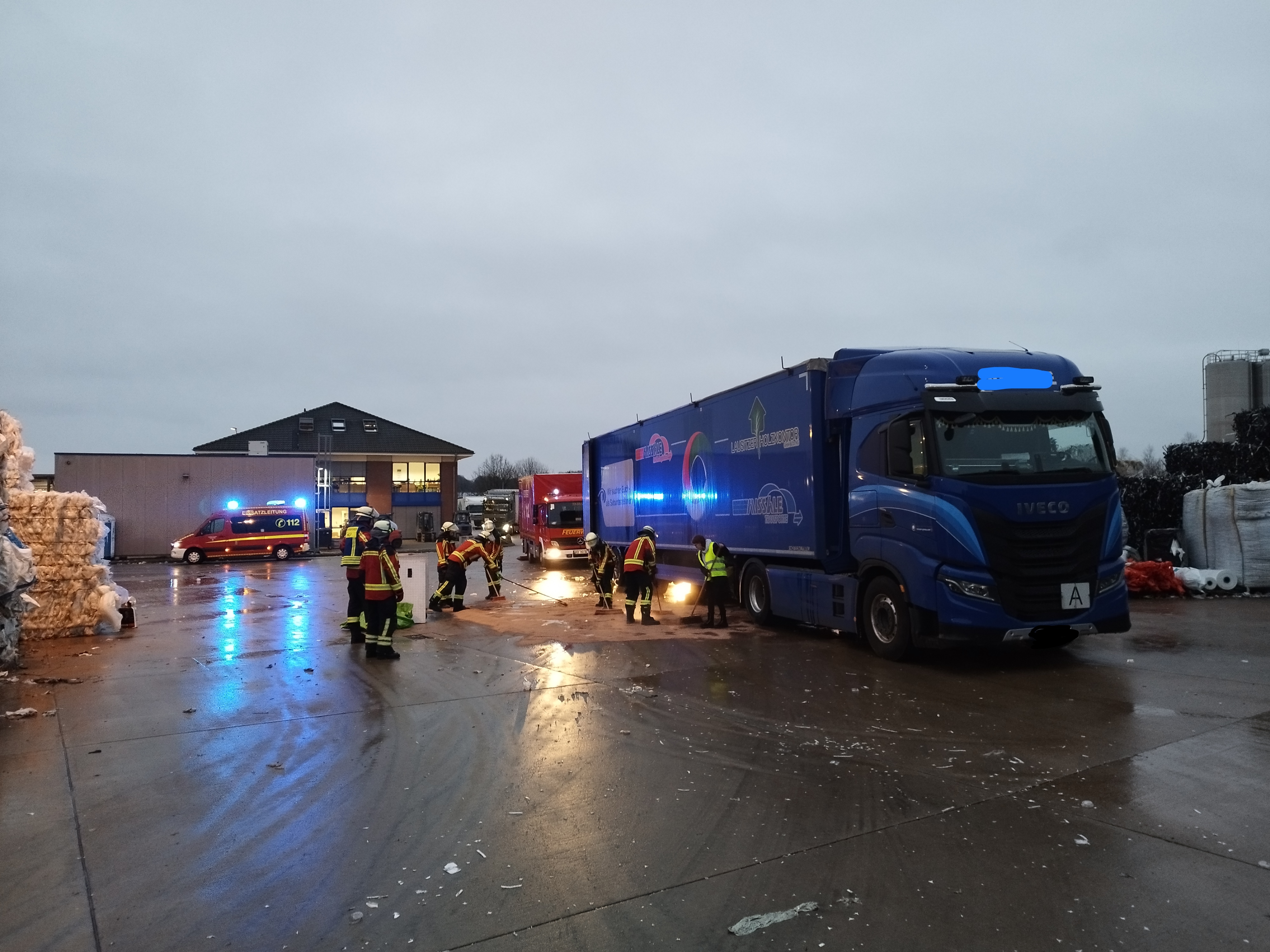 Am Morgen wurden wir aufgrund von auslaufenden Betriebstoffen auf einem Betriebsgelände alarmiert. Vor Ort waren auf ca. 20 qm etwa 100 l Hydrauliköl, auf einer versiegelten Fläche, aus einem LKW ausgelaufen. Wir brachten Bindemittel aus, sodass eine weitere Ausbreitung unterbunden wurde. Nach etwa 60 Minuten konnten wir den Einsatz beenden.