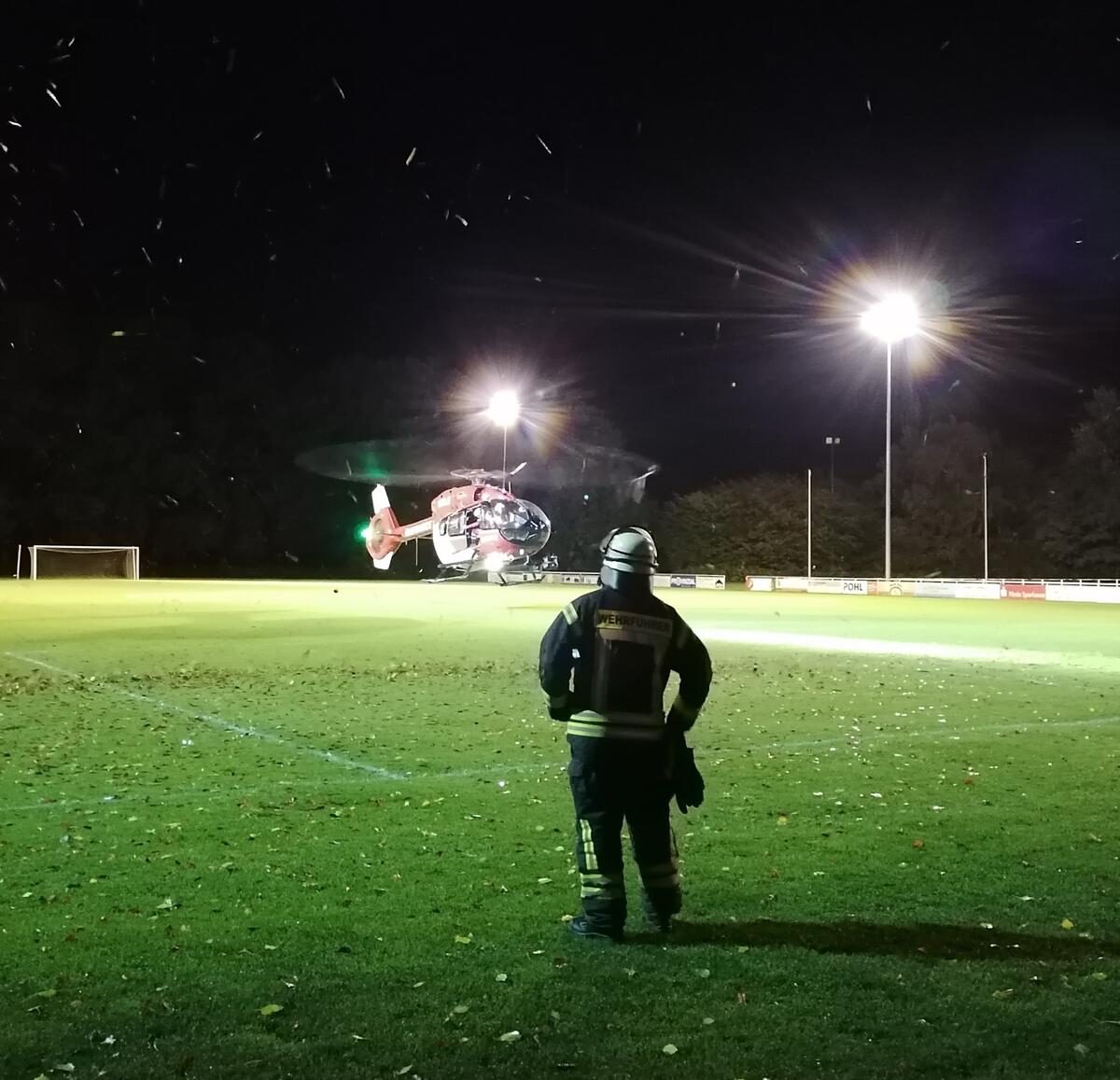 Am Abend wurden wir zur Absicherung und Ausleuchtung einer "Nachtlandung" für den Rettungshubschrauber alarmiert. Zusätzlich brachten wir den Notarzt an die Einsatzstelle.