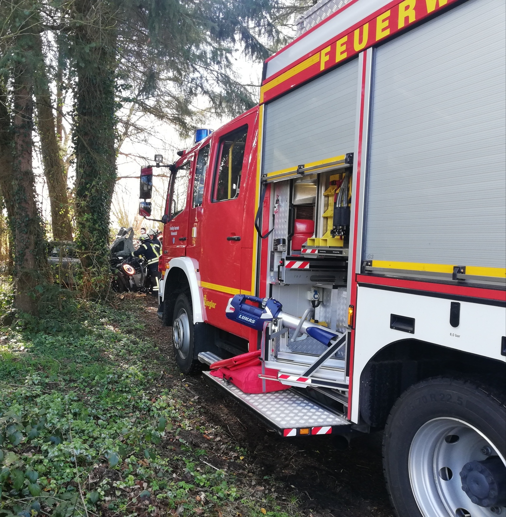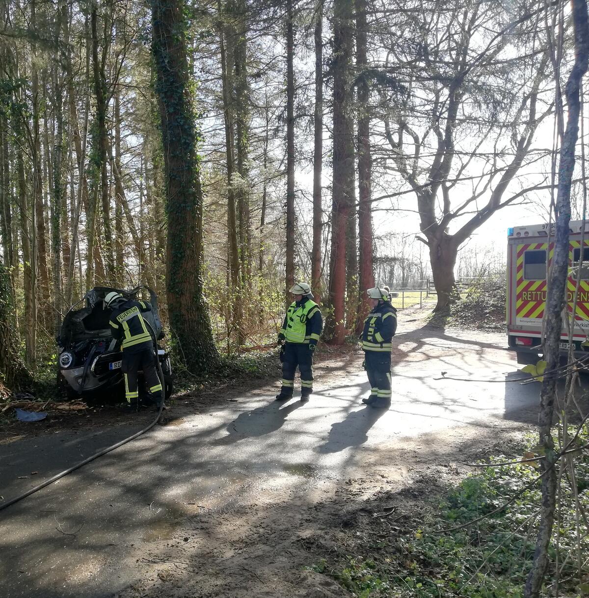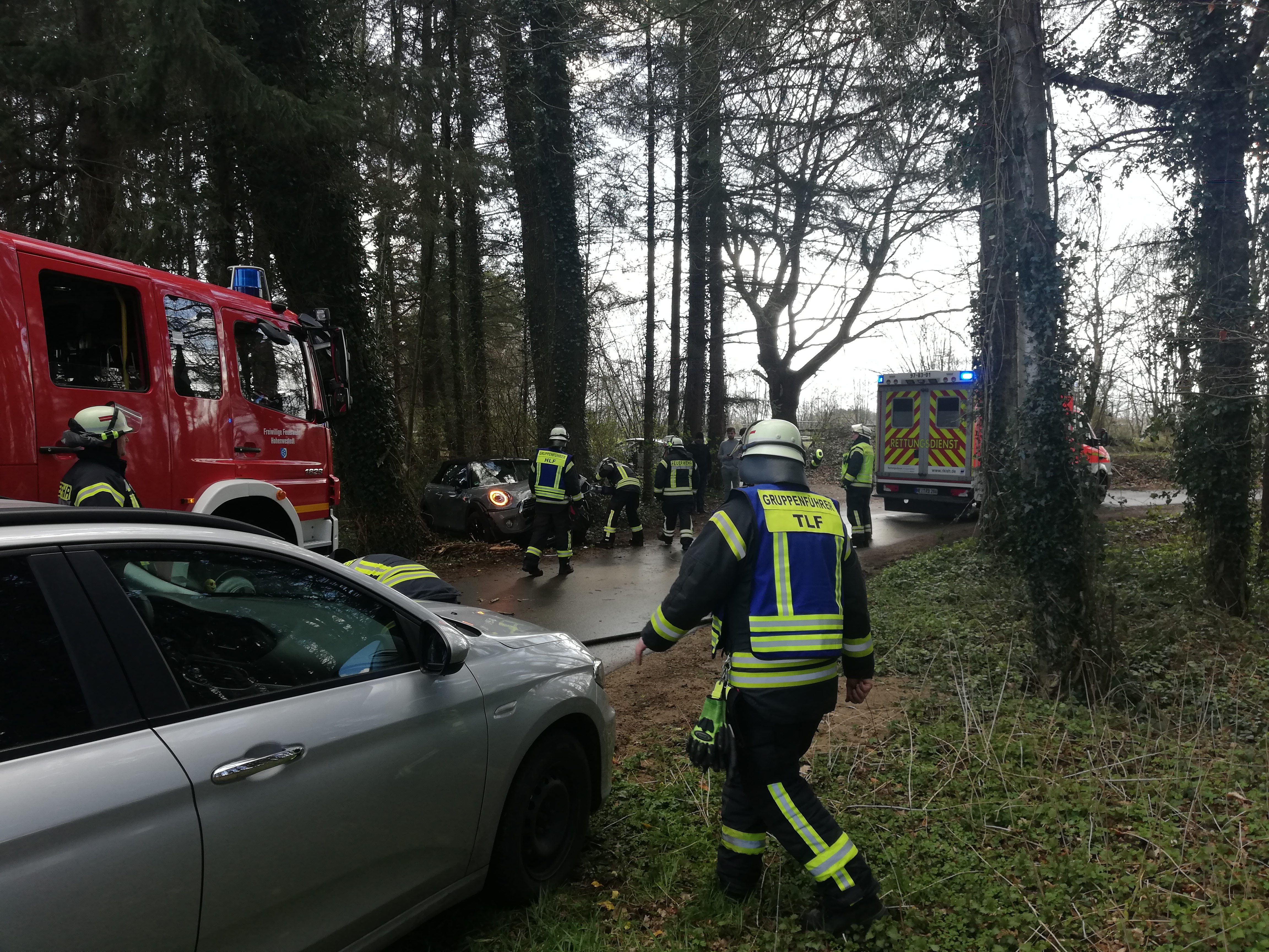 Am Nachmittag wurden wir gemeinsam mit dem Rettungsdienst und der Polizei zu einem Verkehrsunfall alarmiert. Zunächst hieß es, eine Person sei eingeklemmt. Dies bestätigte sich vor Ort glücklicherweise nicht. Wir unterstützten den Rettungsdienst bei der Befreiung und sicherten die Einsatzstelle. Mit dem bereitgestellten S-Rohr konnte ein Entstehungsbrand frühzeitig gelöscht werden.