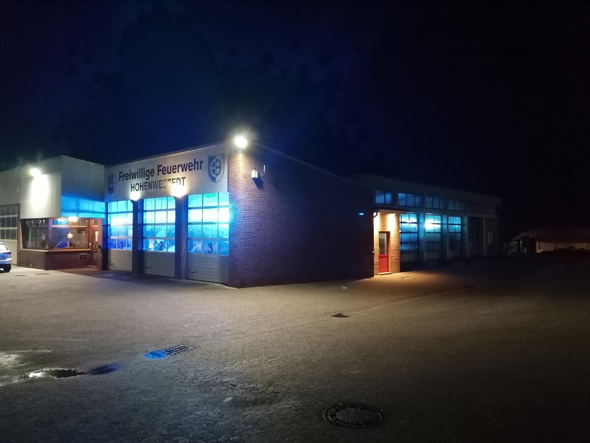 Gestern Abend haben wir unser Gerätehaus blau erstrahlen lassen.