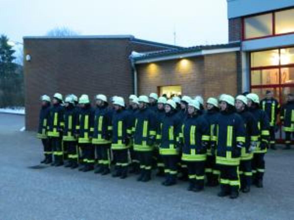Ausbildungsleiter HBM** Dirk Müller und sein Ausbildungsteam bereiteten alle Teilnehmer in sechs Wochen auf diese Abschlußprüfung vor. Die Ausbildung umfasste den theoretischen Teil mit den Themen Rechtsgrundlagen, Fahrzeugkunde, Brennen und Löschen, Verhalten bei Gefahren, ABC-Gefahrstoffe sowie das Thema Brandsicherheitswache. In der praktischen Ausbildung wurde der Formaldienst, der Löscheinsatz in der Gruppe, Leitern, Stiche- und Knoten, sowie die technische Hilfeleistung geübt. Zum Schluß des Lehrganges wurde allen Teilnehmern noch die neue, durch die Kreiswehrführung im August 2012 angeschaffte Schaummittelübungsanlage, vorgestellt. Hier konnten dann alle Kameraden / - innen das Löschen mit Schaum üben. Sehr zufrieden zeigte sich HBM*** Peter Koch vom KFV RD-ECK nach der Abnahme. Somit ist der letzte Lehrgang auf Amtsebene abgeschlossen – weitere Führungslehrgänge folgen dann in Harrislee an der Landesfeuerwehrschule. Auch den Ausbildern dankte er, die an vielen Dienstabenden den jungen Feuerwehrkameraden / - innen das nötige Rüstzeug mitgegeben haben.