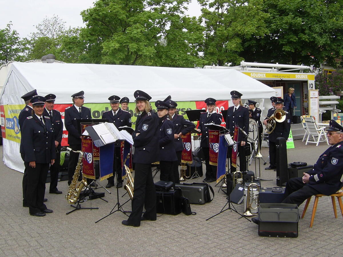 HOHENWESTEDT 14.Mai 2011. Bevor die Hohenwestedt-Messe offiziell durch den Hohenwestedt-Marketing Vorsitzenden Volker Bünnig eröffnet wurde, spielte der Feuerwehr Musikzug Hohenwestedt Medleys und Potpourris aus seinem aktuellen Repertoire, um Veranstalter, Aussteller und Besucher schwungvoll auf die Messe einzustimmen. Die Gewerbemesse, die im dreijährigen Rhythmus stattfindet, ist ein fester Bestandteil im Terminplan des Musikzuges. (off)